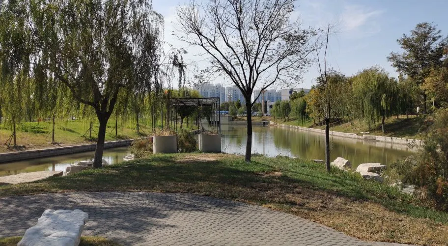 這是一個環湖的生態園,園內植物種類繁多,景色優美,還有專門的健身區,是附近居民運動健身的好去處。