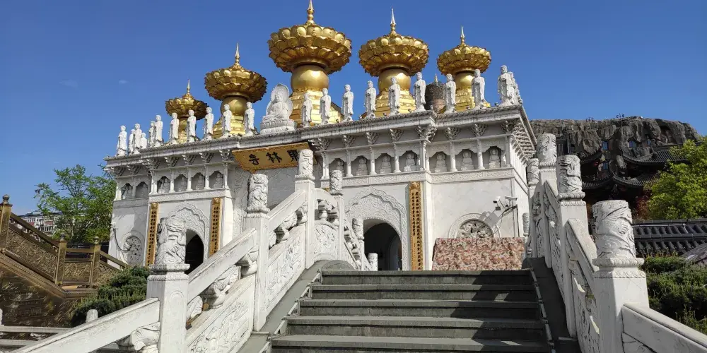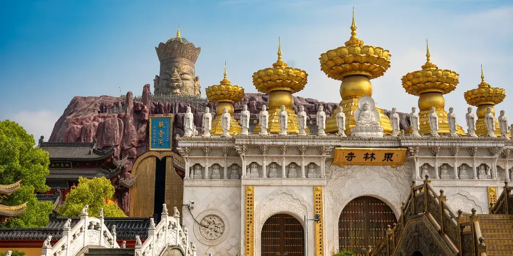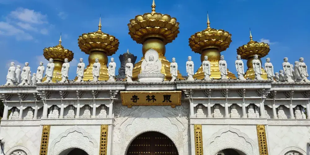 東林寺是上海金山區的著名寺廟,位於上海西南的朱涇鎮,原名觀音堂,於元朝至大元年(1308年)創建。不同於那些樸素的古寺,東林寺呈現的反而是恢宏氣勢,在這裡可以看到大世界基尼斯之最“最高的銅門”——千佛門、最高的室內千手觀音聖像、國內獨有的室外五百羅漢山,可以感受到不一樣的佛教氛圍。