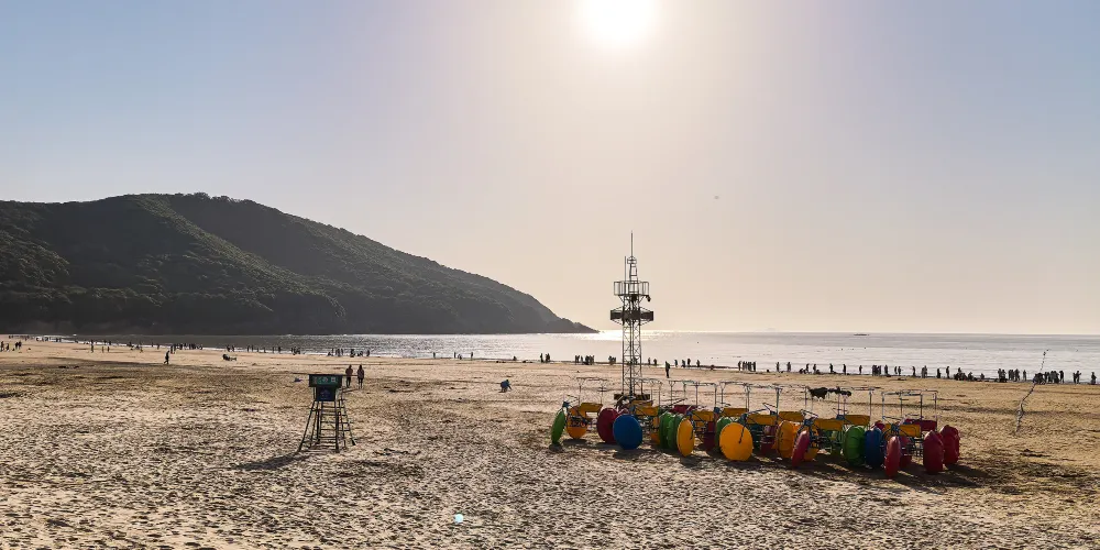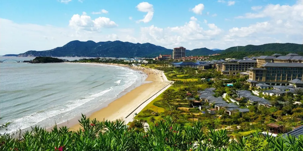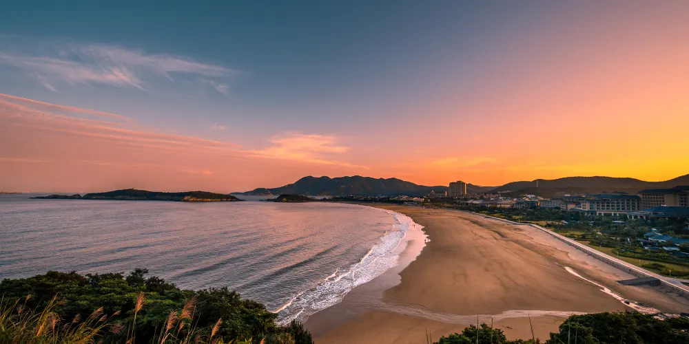 東沙景點位於朱家尖十里金沙景區內,十里金沙擁有華東地區的沙灘群,包括青沙、里沙、千沙、南沙、東沙等九個沙灘,景色極為壯觀。相對於南沙的熱鬧,東沙要安靜一些,這裡的沙灘和海水和南沙一樣,不過這里扎帳篷露營的較多,而且是朱家尖看日出的好地方,是放鬆休閒和聚會的好場地。