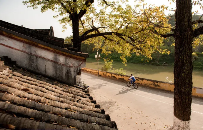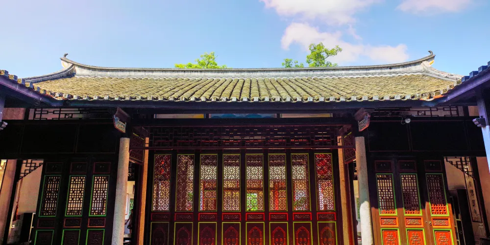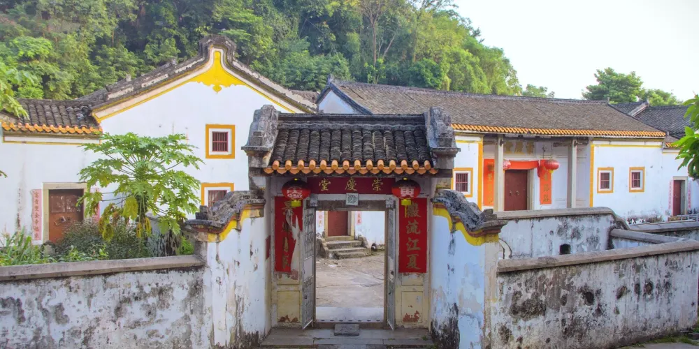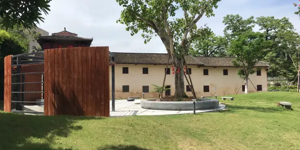 則評價清末愛國詩人黃遵憲的故居名為“人境廬”,取意陶淵明詩句“結廬在人境,而無車馬喧”意。坐落在梅州市東3公裡處的周溪畔,建於1884年春。門楣上的“人境廬”三個字,為日本書法家大域成瀨溫所書。
