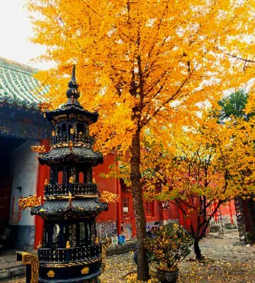 東嶽廟始建於五代後唐清泰二年,後多次被重修,現存建築有大殿、拜殿和門樓等,其中,大殿麪闊五間,進深三問,單檐歇山頂,黃綠色琉璃瓦覆頂,整座建築非常壯觀。