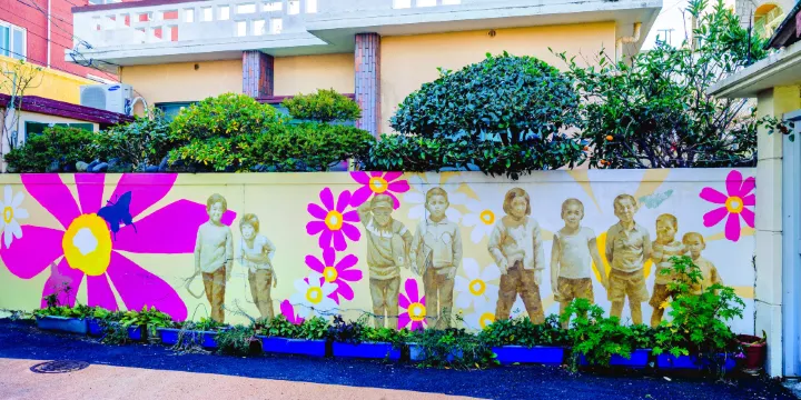 位於濟州市東門路的壁畫街,可以看到濟州的風土人情,是各國藝術家們喜愛的地方。走在其中,似桔園,似荷塘,又似回到了韓國的古代。