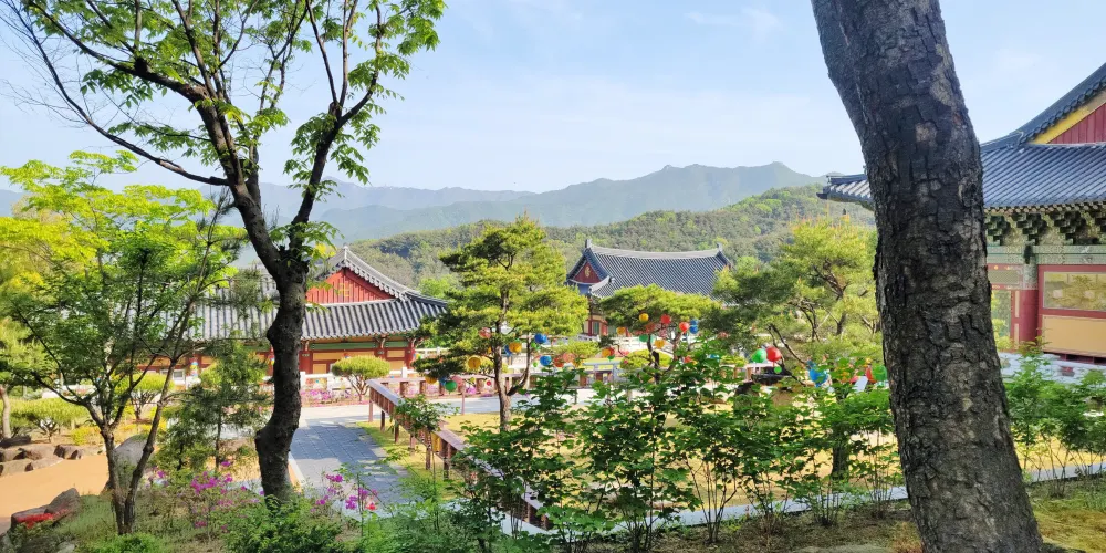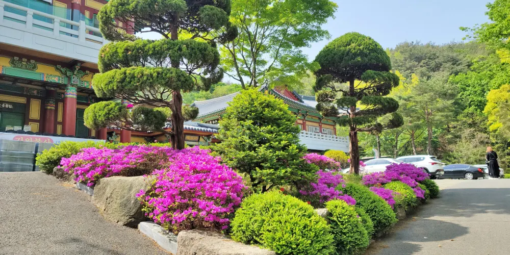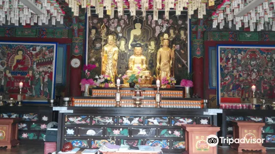 目前的大雄殿重建於1727年,分為念佛庵等6座庵子。在大雄殿前的樓閣上掛有“嶺南緇營衙門”的牌匾,由此可見,在壬辰倭亂時期思溟大師曾將桐華寺作為指揮總部。此外,桐華寺中建有高33米的統一藥師如來大佛,象徵著韓國人民希望實現統一的願望。