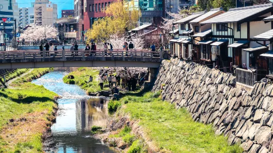 繩手商店街位於千歲橋附近,是松本市有名的步行者天堂,裡面有很多工藝品的店鋪,及餐飲店鋪,旁邊還有四柱神社。 從JR松本站前往松本城的途中會經過此處,距離松本城步行5分鐘。