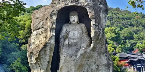 紹興柯岩風景區位於柯山腳下,包含柯岩鑑湖、魯鎮三部分。柯岩是整個紹興柯岩風景區的核心,三國時期,這裡曾是一處採石場,擁有姿態各異的石宕、石洞、石潭、石壁等奇景。這裡離市區不遠,來了解紹興文化、休閒度假都很合適。紹興柯岩風景區有兩個大門,一個是柯岩一個是魯鎮,兩個門都可以進入景區,且相距不遠。上午遊覽景區建議選擇柯岩-鑑湖-魯鎮線路,下午2點後買票建議選擇魯鎮-鑑湖-柯岩線路遊覽。如今的紹興柯岩風景區包括石佛鏡水灣、柯岩風景區-越中名士苑、圓善園四大景點,其中較為特別的是「天工大佛」和「奇雲石骨」。「天工大佛」開鑿於隋代,歷經石工三代鑿成,頗有氣勢;而「奇雲石骨」上寬下窄,猶如一座顛倒過來的寶塔,高30餘米,底圍僅4米,看似頭重腳輕,卻已在風雨中屹立了一千多年,令人驚嘆。鑑湖是紹興的「母親湖」,建有東漢笛亭、南洋秋泛、五橋步月、葫蘆醉島等四處景點。在這裡可以坐烏篷船泛舟在鑑湖之上(需另付費),還可以在葫蘆醉島品黃酒、看曲酒流觴,感受紹興的黃酒文化。魯鎮本是魯迅筆下虛構的小鎮,魯鎮則是為了還原魯迅筆下的「魯鎮」而建的一個鄉村小鎮主題公園。魯鎮依傍著鑑湖,有商鋪客棧、文化展館、台門戲台等等,魯鎮街上,有演員扮演的魯迅小說裡阿Q、祥林嫂等人物,很逼真,可以和他們合影。紹興柯岩風景區內有柯岩酒家、品酒館、一石居酒家等餐館可以用餐,價格略貴,建議自帶些食物。遊玩過後,返回紹興市住宿。