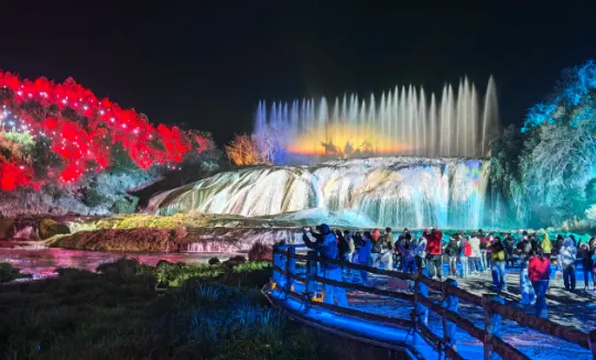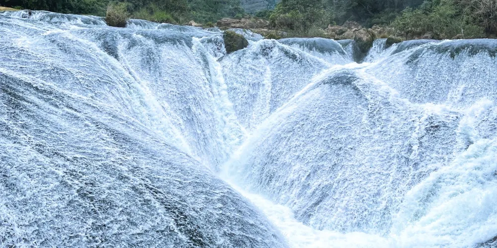 瀑布水沿著瀑面傾瀉而下,聲勢浩大,場面蔚為壯觀,令人驚嘆。運氣好的話還可以看到美麗的彩虹。這裡也是86版電視劇《西遊記》片尾曲的取景地。