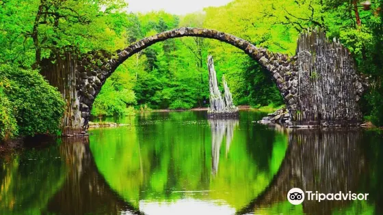 Rakotzbrücke是德國知名的惡魔之橋,美麗的橋樑讓人歎為觀止。在湖面的倒影下,橋樑和倒影形成一個整圓,周邊植被豐富叢林環繞,搭配着中世紀的外觀使它具有魔幻的感覺。這是一個吸引人的景點,遊客和攝影師可以在這裏盡情享受美景,感受獨特的氛圍。
