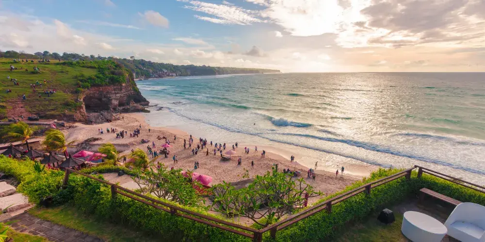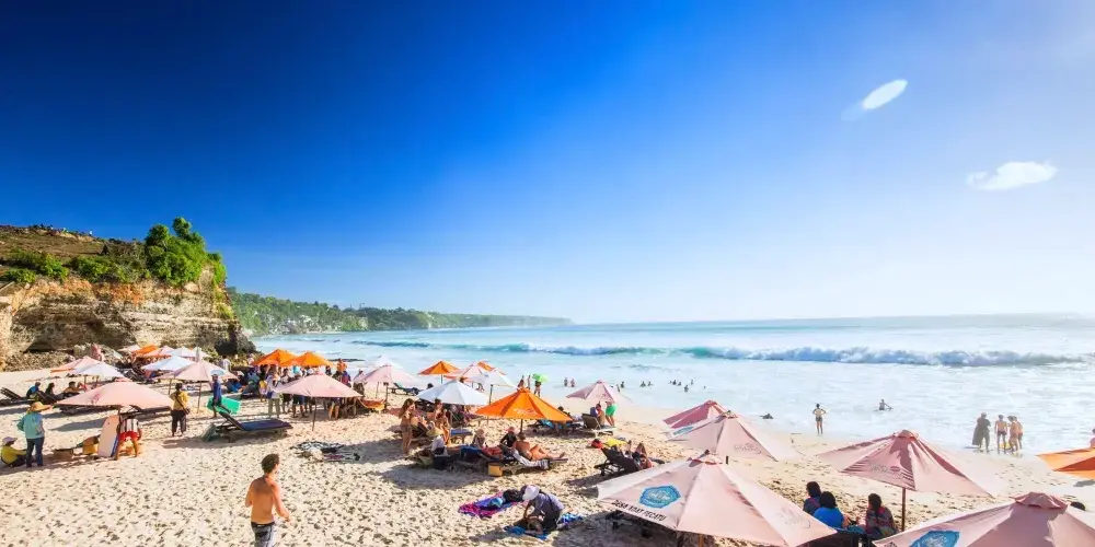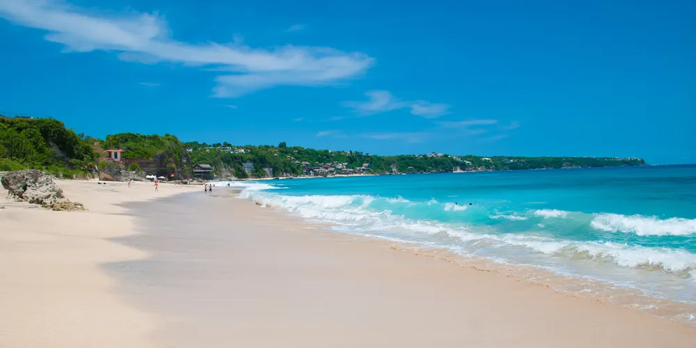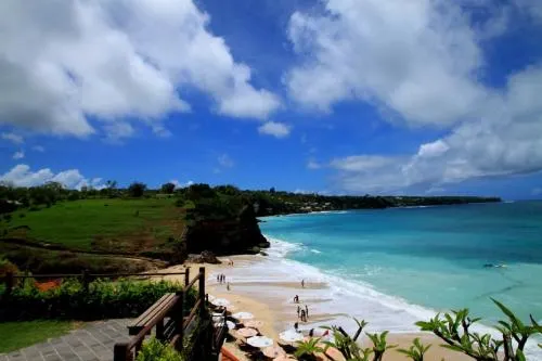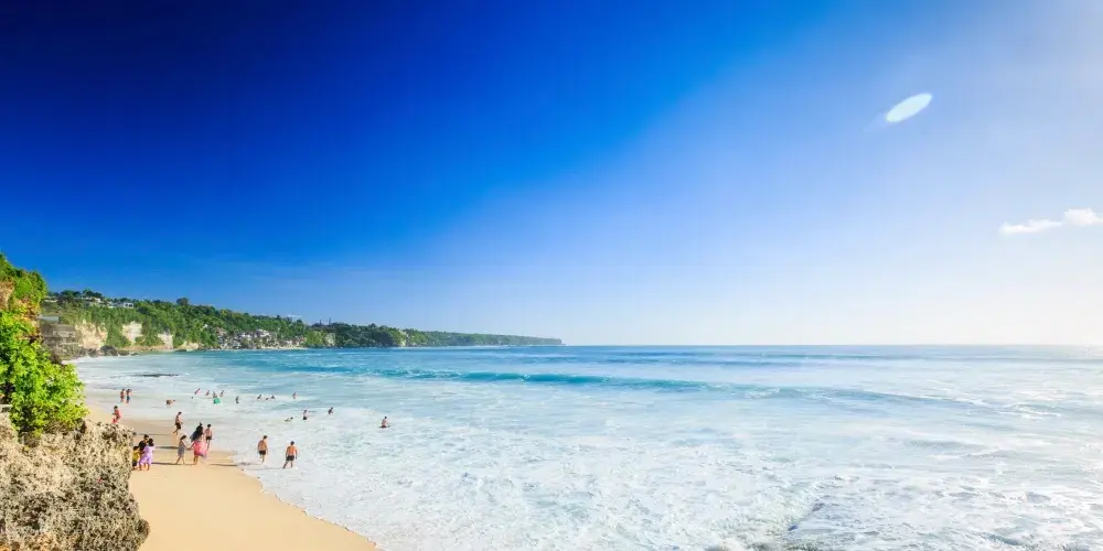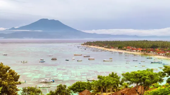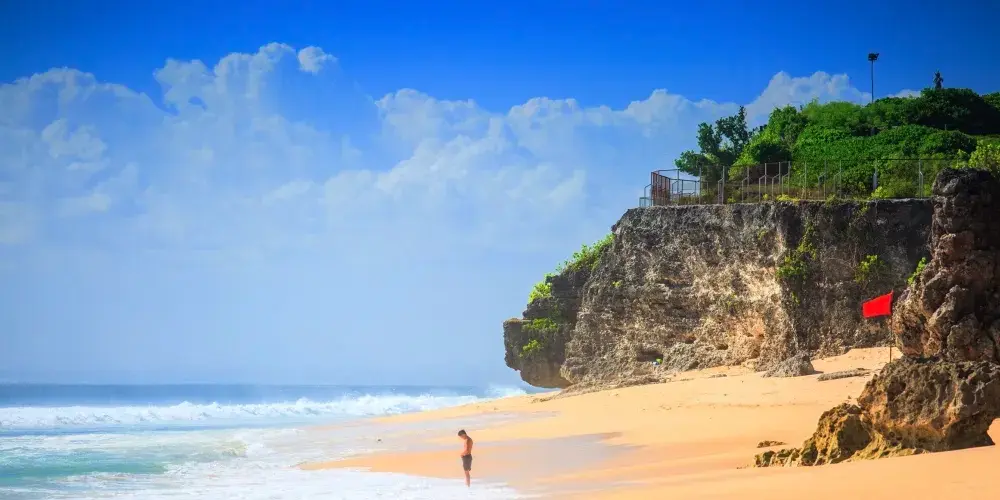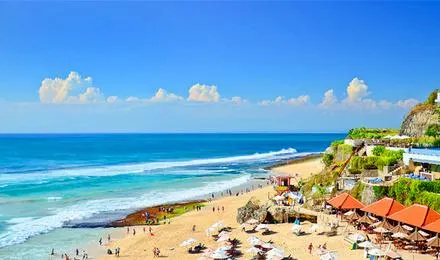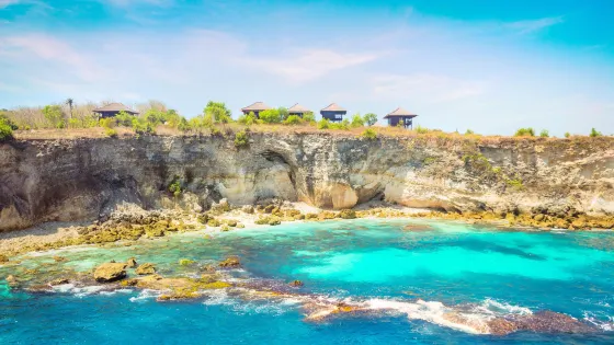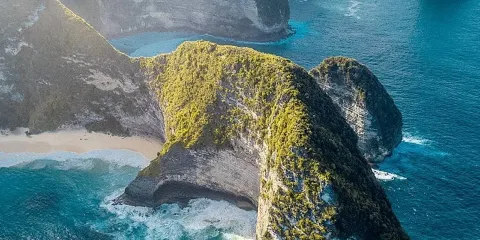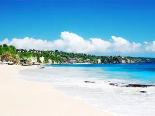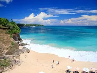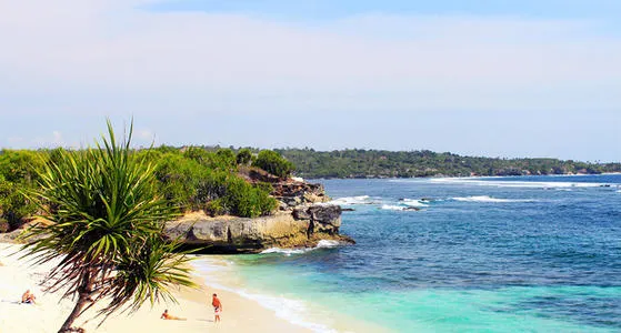位於藍夢島,海灘非常美麗。可愛的弧形白沙灘邊是清澈碧藍的海水,還可以遠眺巴厘島上的阿貢火山。