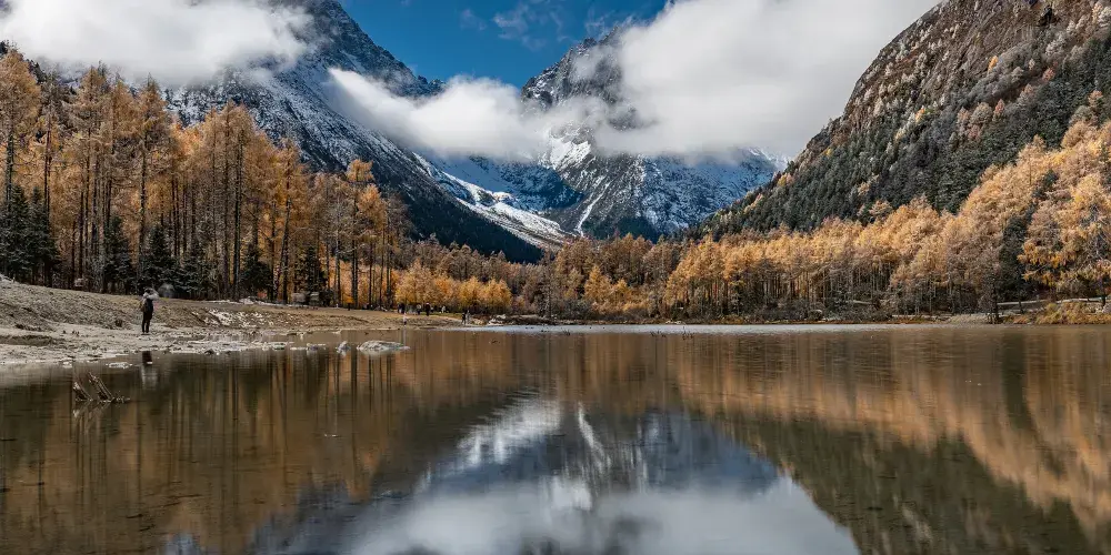 畢棚溝卓瑪湖是典型的高原湖泊,面積8千平方米,湖水清澈明亮,水流不息,每逢金秋,周圍彩林紅葉環抱,五彩斑斕,也因為她像身着華服佩帶碧玉寶石的美麗藏族姑娘“卓瑪”,因此得名“卓瑪湖”。