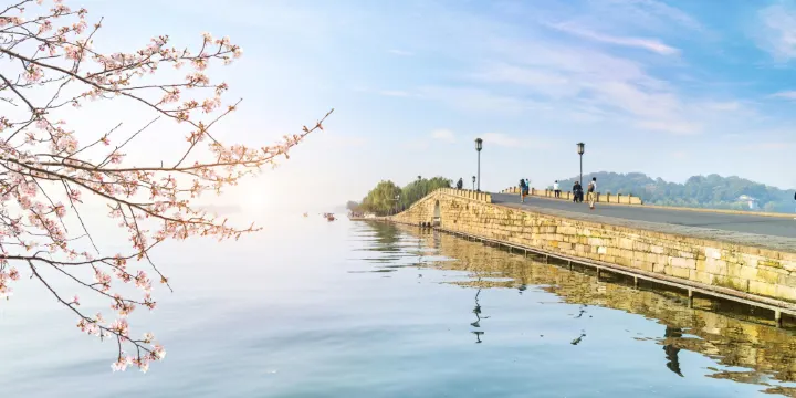 斷橋殘雪是西湖十景之一,指冬日雪後,橋上冰雪未全部消融,仍有殘雪似銀,從高處眺望,橋似斷非斷,從而叫做“斷橋殘雪”。斷橋位於白堤北端,《白蛇傳》中許仙、白娘子斷橋相會的橋段使斷橋盡人皆知,也給這座長橋添了許多浪漫色彩。遊人來到杭州,總免不了要來這裡走走,甚至憧憬一下在橋上碰到自己百年修來的“有緣人”。