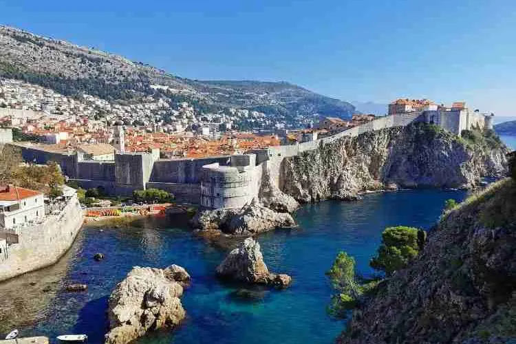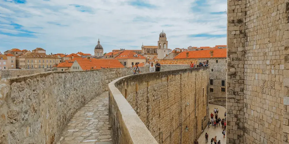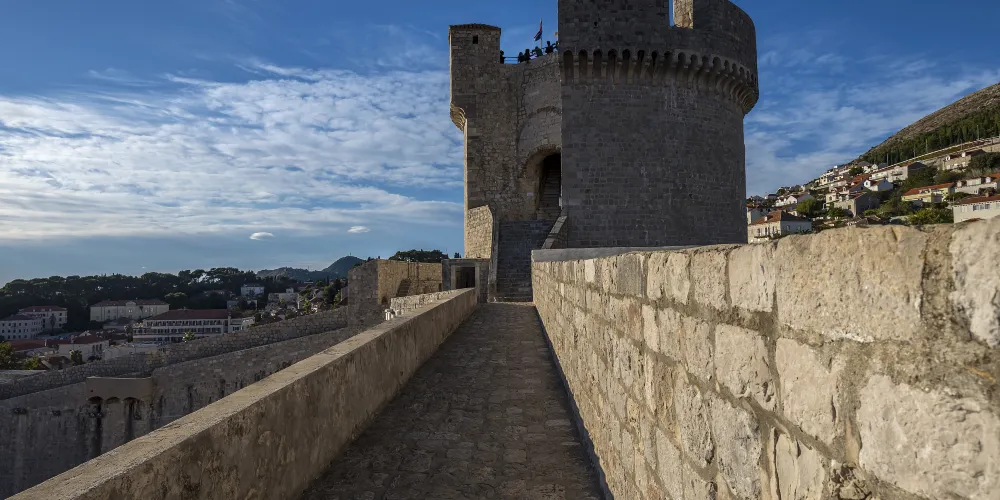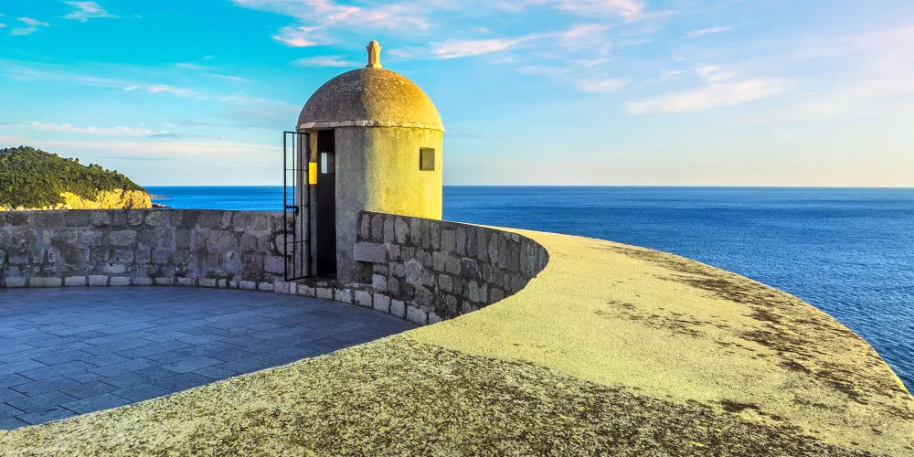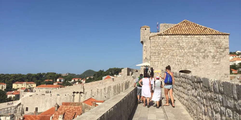 杜布羅夫尼克城牆是圍繞在老城周圍的防禦性石牆,城牆全長1940米,與海相接處高達25米,是歐洲最大最完整的複雜結構城牆。這座城牆從7世紀起就矗立在克羅埃西亞南部,被認為是中世紀時期最偉大的防禦系統之一,從未被敵軍破壞過。城牆很好的保護了杜布羅夫尼克五個世紀的平安與繁榮。漫步在老城的城牆上,可以欣賞到完美的景色。