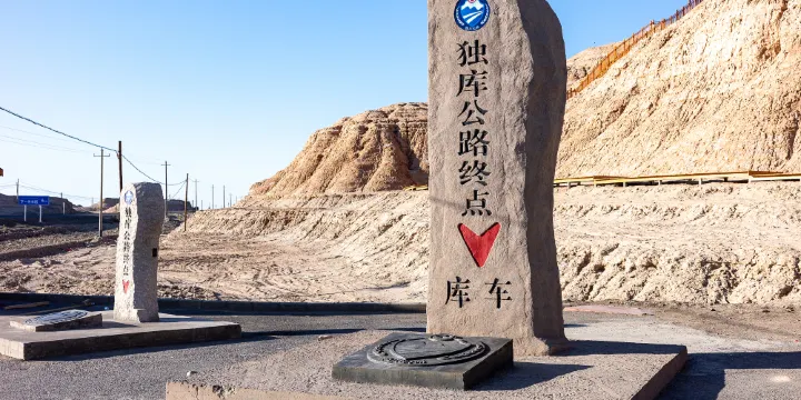 獨庫公路終點紀念碑,是獨庫公路的終點標誌,位於天山南麓、塔里木盆地北緣的庫車市,見證著這條英雄之路的輝煌與滄桑。從外觀上看,紀念碑整體造型簡潔而莊重,由堅固的石材打造而成,以抵禦當地惡劣的自然環境。碑上刻有 「獨庫公路終點」 等字樣,字體剛勁有力,清晰地向人們宣告著這條公路的終點,也讓每一個到達這裡的人都能感受到一種強烈的儀式感。獨庫公路終點紀念碑承載著豐富而厚重的歷史意義。對無數遊客來說,獨庫公路終點紀念碑是他們自駕之旅的重要打卡點。當抵達終點紀念碑時,心中充滿了對這條公路的敬畏和對築路英雄們的感激之情。