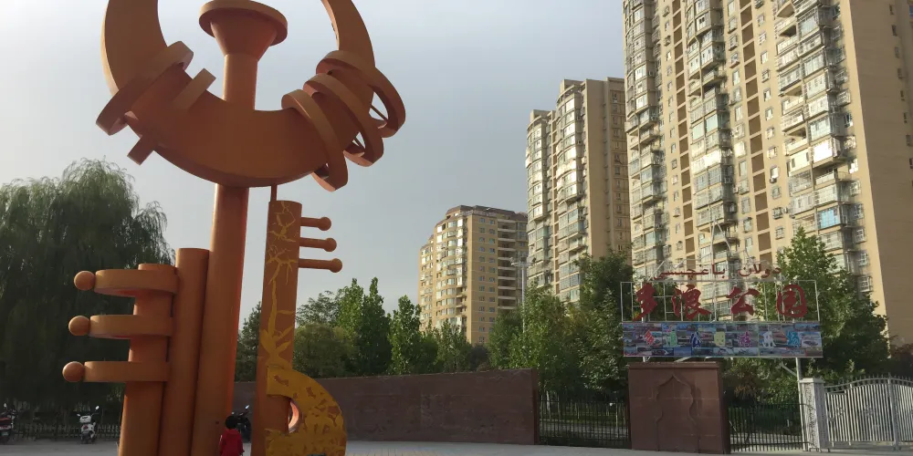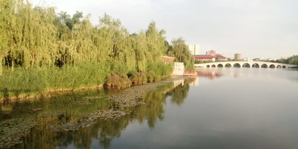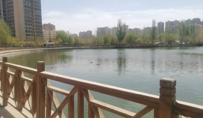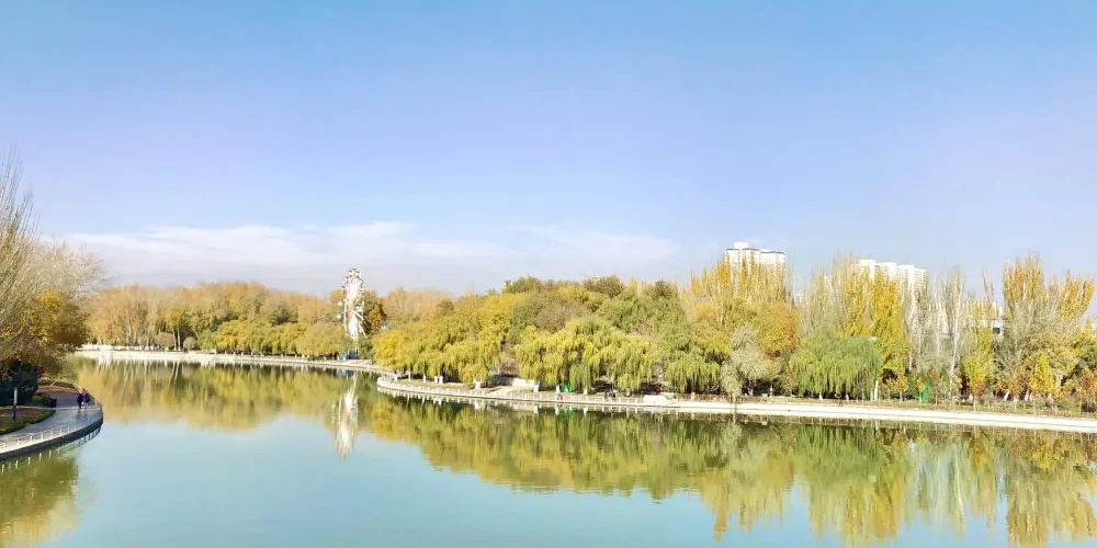 阿克蘇市內的沿河帶狀公園,休閑娛樂的好地方。