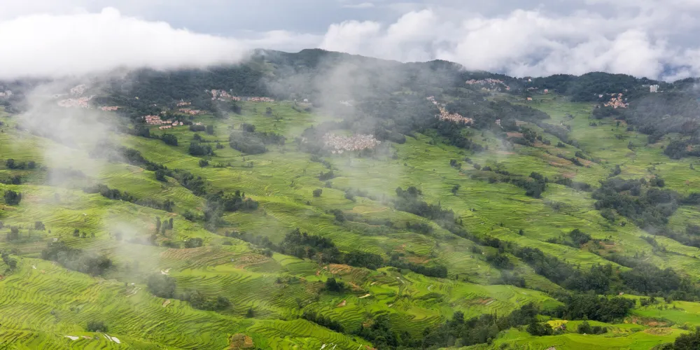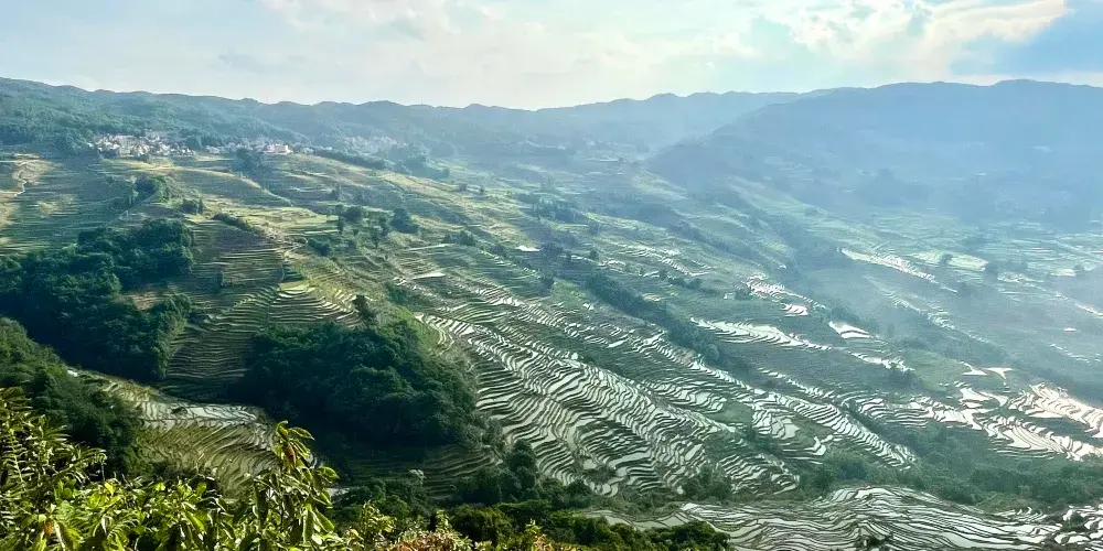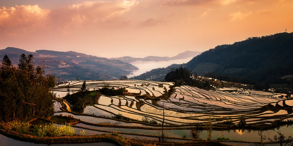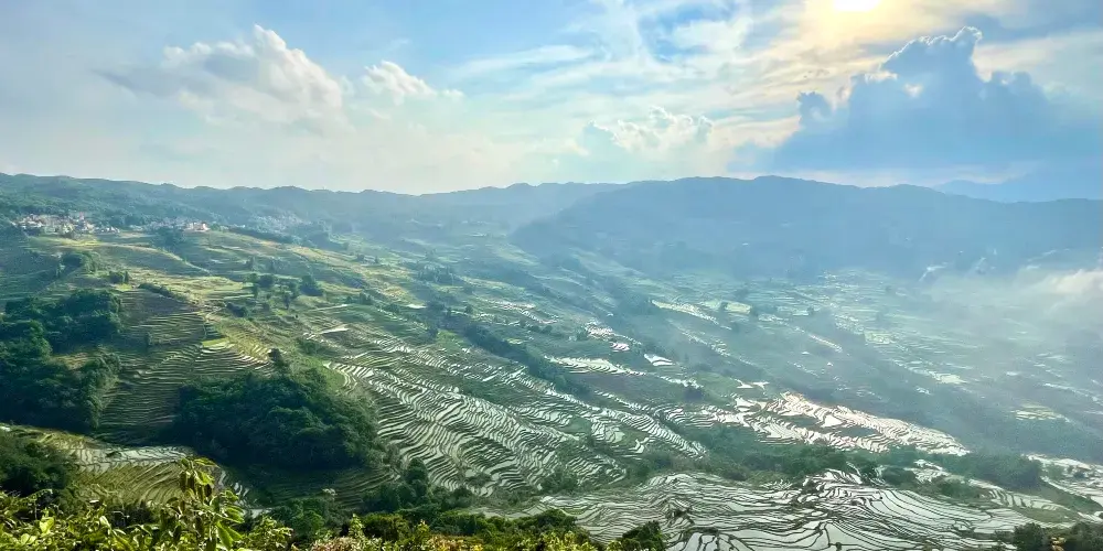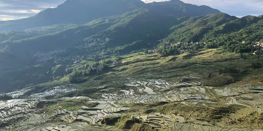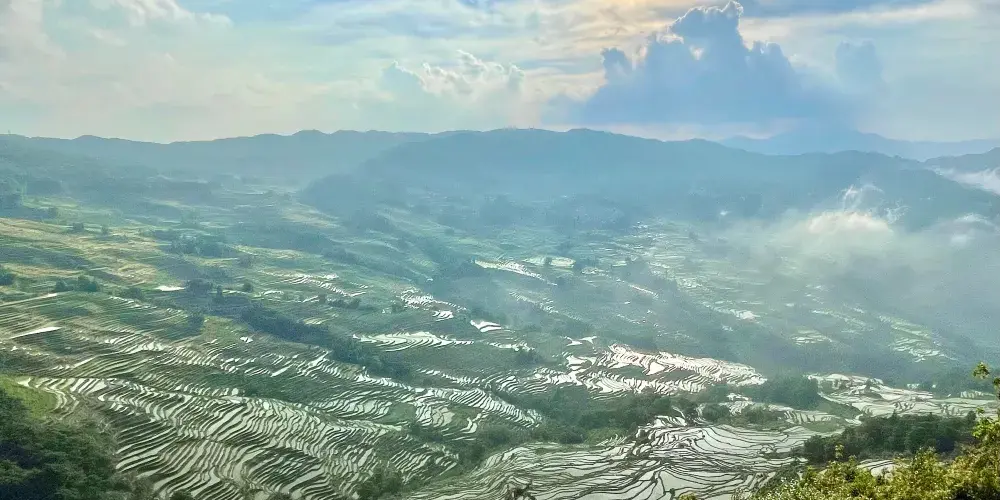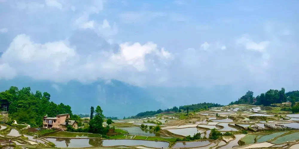 多依樹景區包括多依樹、愛春、大瓦遮等連片上萬畝梯田,像版畫一樣連綿壯觀。尤其是日出的時候,朝陽的光輝在梯田水面上跳躍,變幻出多樣的色彩。
