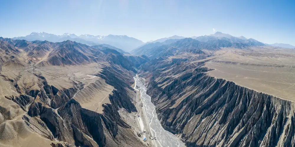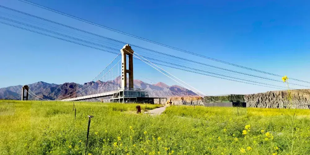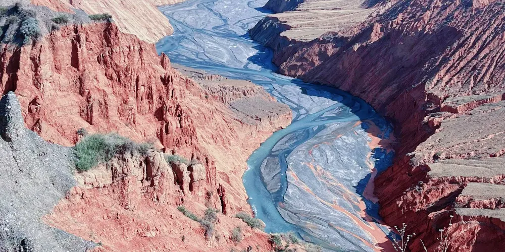河水衝出天山後,切割獨山子西南方向傾斜平原形成的神奇風光峽谷,峽谷兩岸的階地歷歷在目,至少可分9級,階地面上是荒漠草原,生長著蒿類、針茅等。在獨山子境內奎屯河流經獨山子大峽谷之中峽谷近南北走向,峽谷谷壁懸崖陡峭,谷底流水時分時合,谷肩地面是荒漠草原,站在谷肩處遙望峽谷,呈現在眼前的是一幅典型的大峽谷景象。