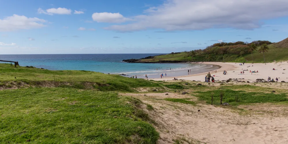 則評價復活節島北部的阿納凱海灘是全島非常富有魅力的景點,除一排威武的“moai”巨人石像外,一片白色的沙灘又長又寬;岸上的棕櫚樹林青翠茂密。攀上全島高點,海拔507米的特雷瓦卡山頂,極目遠眺,島上的大小火山和四周的石像盡收眼底,浩瀚的太平洋與藍天渾然一體,令人心曠神怡。從山上下來不遠便是有名的“七武士”巨人石像景點。傳説這是一個毛利巫師的七個兒子等待歐圖-瑪圖阿王到來的地方。這裡是全島保存較為完好的“moai”巨人石像羣。每當傍晚,人們步行到這裏觀看日落,霞光映紅半邊天,巨大的石像被襯託出永恆的剪影。