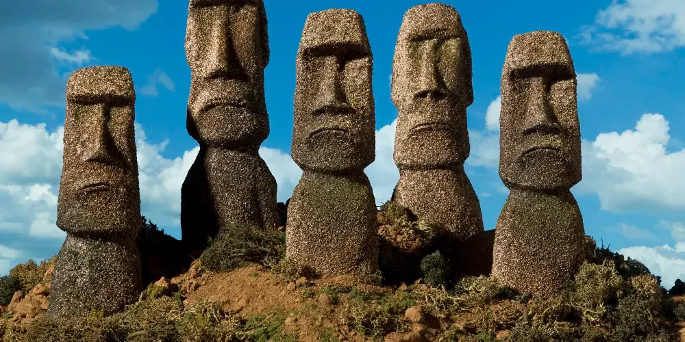 公元300年時玻利尼西亞人(Polynesian)在沒有外界影響下,形成了自己獨特的、想象豐富的、原汁原味的紀念性雕刻和建築傳統。從10世紀到16世紀,玻利尼西亞人陸續建立了許多神殿,豎起了許多稱為莫阿伊(moai)的巨大的石像,至今仍是一道無與倫比的文化風景,吸引全世界各地遊人慕名來訪。