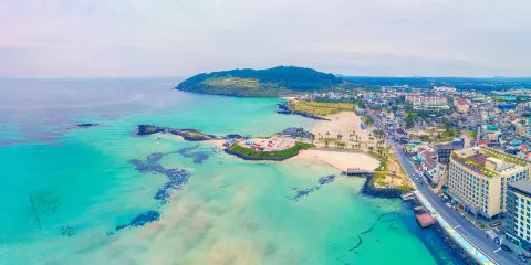 濟州島的濟州寺水自然休養林位於漢拿山東北部的寺嶽山之上,以其美麗的西洋杉而著稱。寺嶽是高約650米的山峰,在火山活動後形成的。站在寺嶽山頂,可將周邊的景觀一覽無餘,遠眺至東面的城山日出峰。