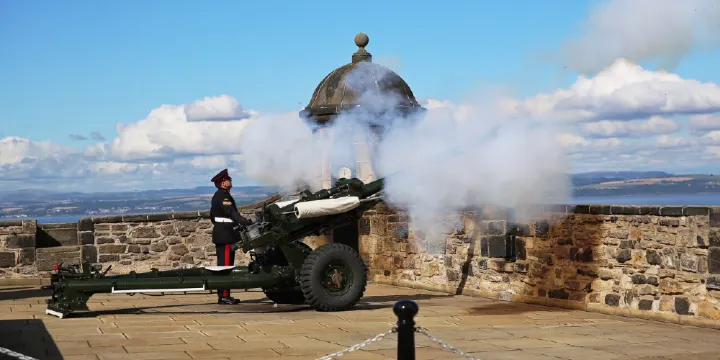 △城堡廣場的砲台旁邊,有機會俯瞰城堡下方的風景。每天下午1點,這裡都會鳴響一門空砲報時,這就是著名的一點鐘炮。