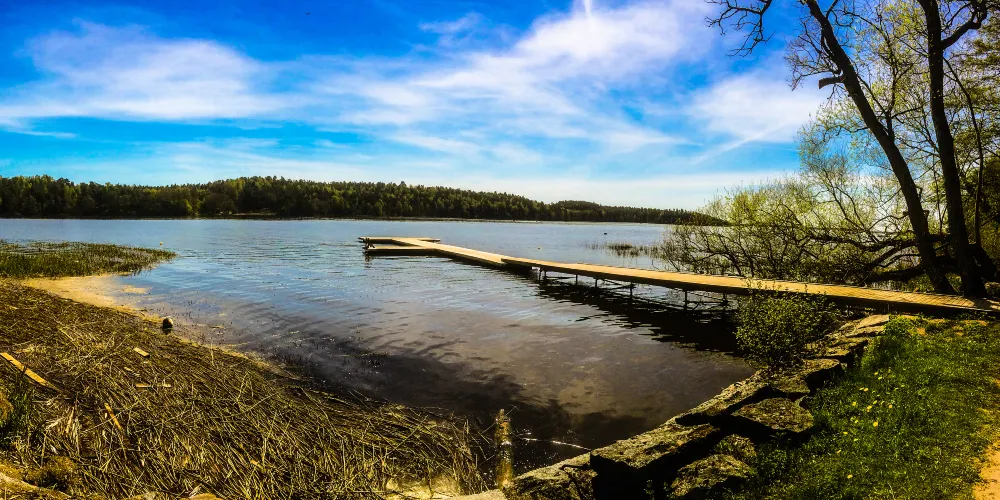 埃科恩湖位於烏普薩拉市的東部,距離城區大概有30公里左右。沿途有許多當地人所住的各色形態各異的房屋。湖邊有着開闊的綠地,湖面清澈而寧靜,在岸邊還停有遊艇、帆船等,藍天、白雲配上湖面的倒影,讓人感覺愜意。