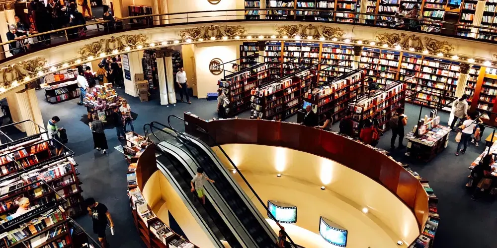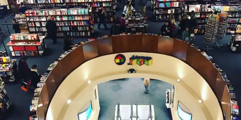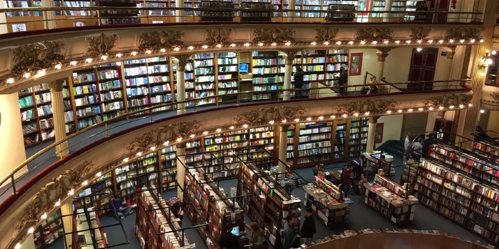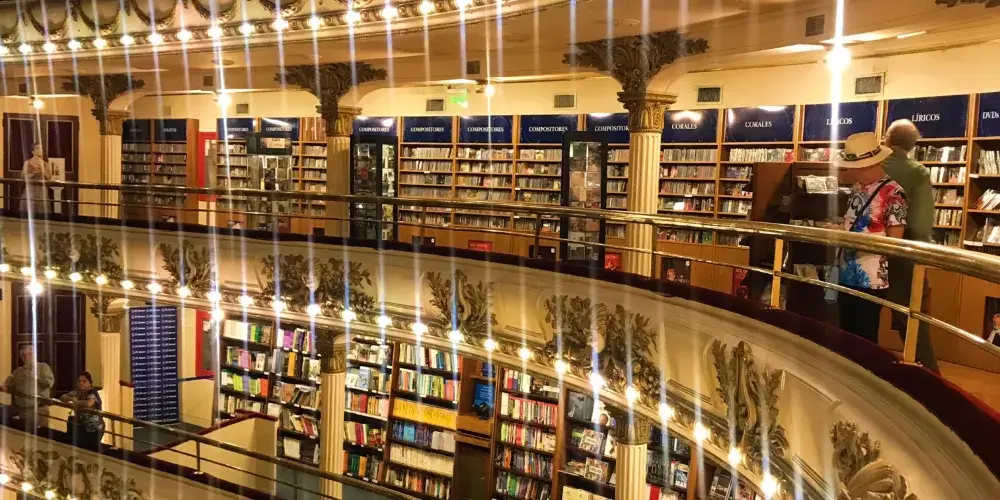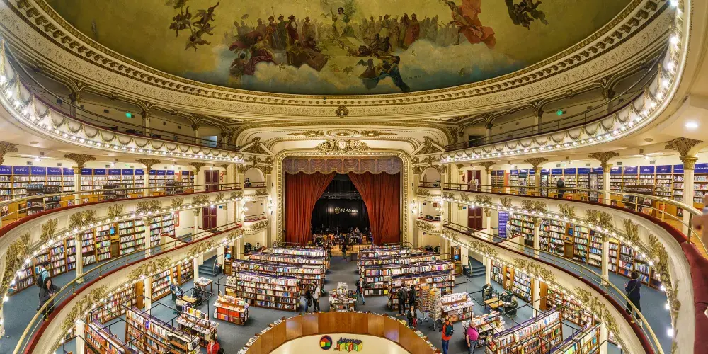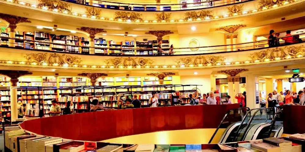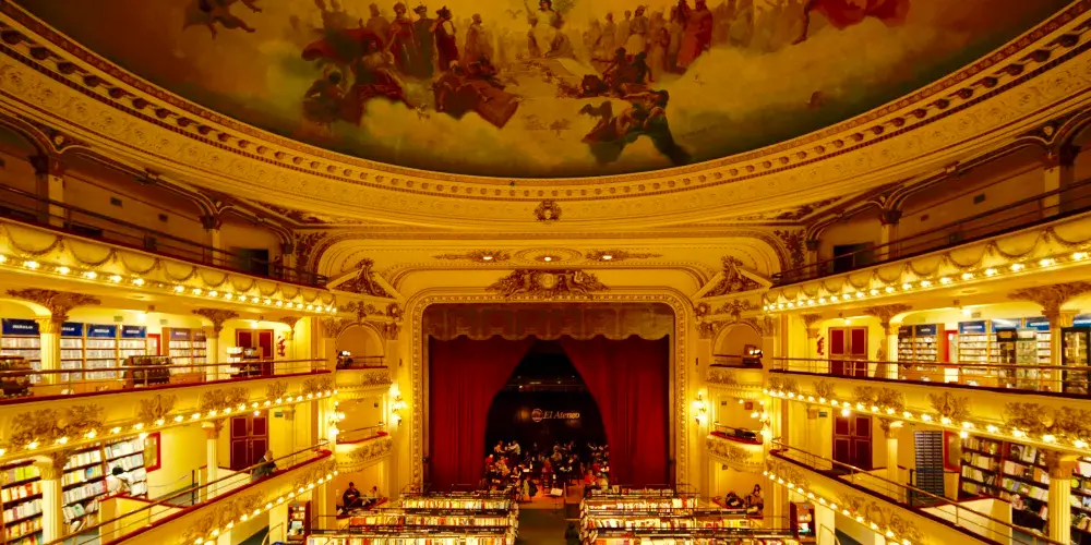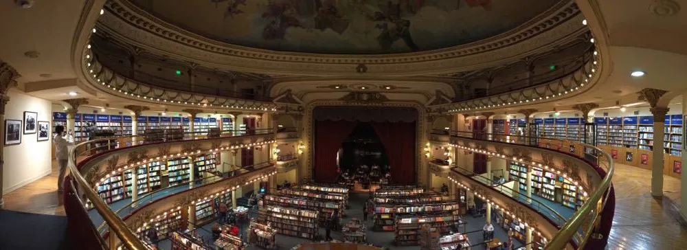 El Ateneo書店原來是一座劇院,始建於1919年,曾經為布宜諾斯艾利斯人提供多種娛樂服務,包括歌劇,電影展等。進入上世紀70年代,因年久失修而逐步廢棄。後來將此廢棄劇院打造成書店,劇院原來的底層出售兒童書籍和玩具,第二層出售其他各類書籍,第三層則出售唱片和DVD光盤。書店還保留了第四層的一些座椅,讀者可以在那裡閱讀,並俯瞰整個圖書賣場。