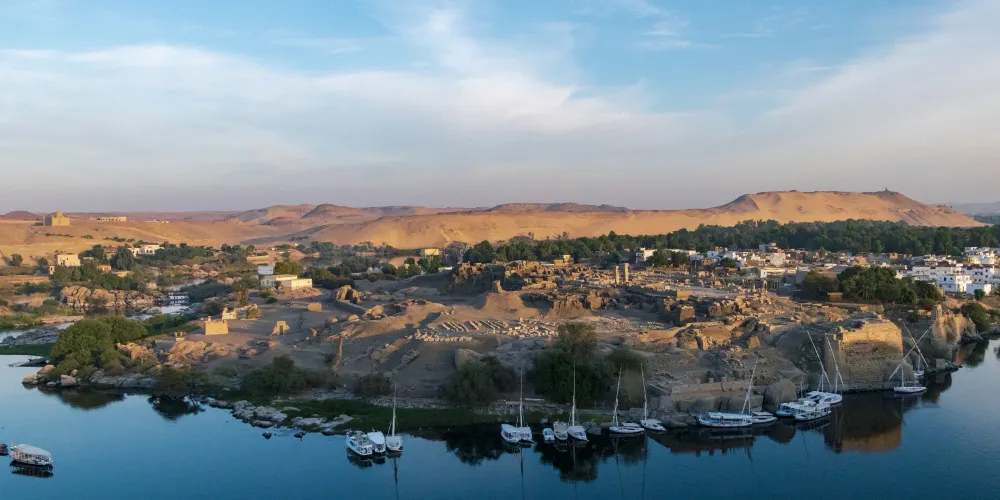 大象島是位於尼羅河中的島嶼,是埃及最古老的地區之一,島上還有出土的器具是屬於史前時代的。位於尼羅河一個大瀑布附近,是埃及與蘇丹的邊界,被稱為“大象”有幾個因素,一是過去是重要的象牙交易地區,一是河岸邊的巨大鵝卵石遠看很像躺著曬太陽的大象。早在古埃及時期,阿斯旺就是舉足輕重的貿易中心,而所謂的“中心”,指的就是集經貿、政治、宗教等權勢於一處的大象島。