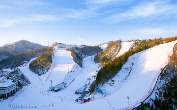 伊利希安江村度假村滑雪場位於江原道春川市,該度假村修建了初級、中級、高級滑雪道,滿足了不同遊客的需求,是備受滑雪愛好者們喜愛的滑雪勝地。這里特有的溪谷型滑雪道可以保證遊客滑雪時的安全。在這裡可以體驗滑雪的樂趣,還可以欣賞到大自然的美景。