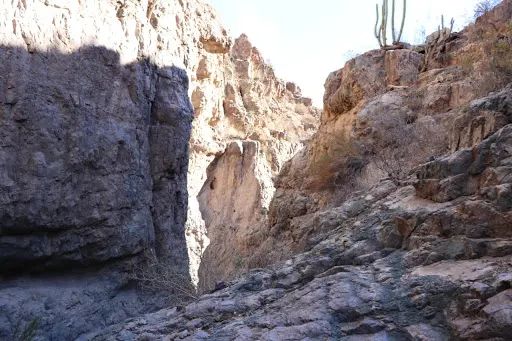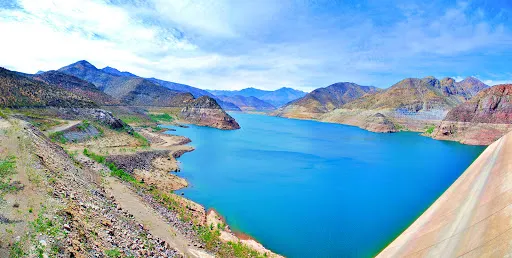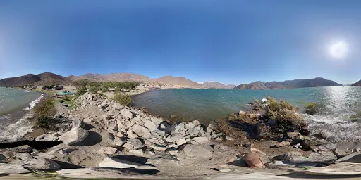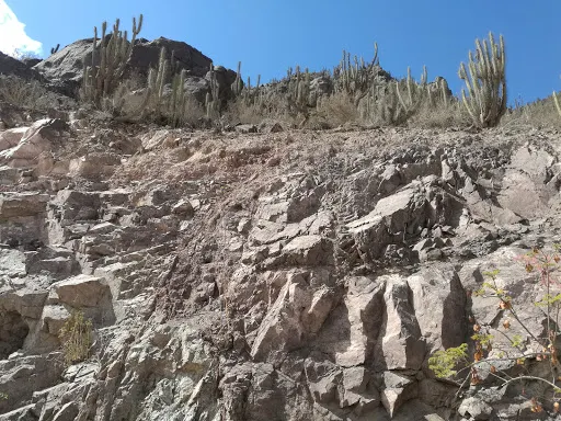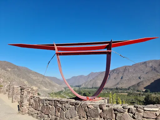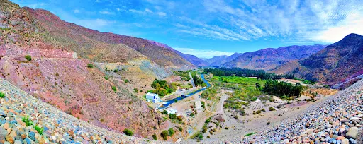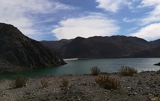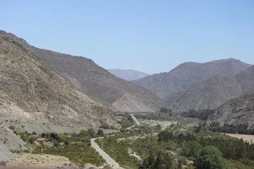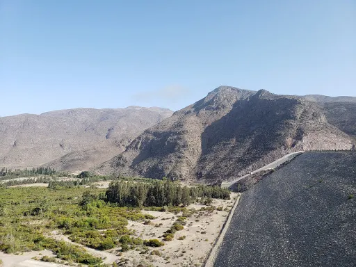 Tramo Embalse Puclaro a El Molle 如同一塊鈷藍色的碎片,鑲嵌在智利科金博大區的沙漠峽谷中。離開水庫堤壩,道路迅速切入乾涸的沖積扇地帶。車輪碾過泛白的鹽鹼土,兩側山體裸露的沉積岩層褶皺如刀削,地表突然沉降至Puclaro湖古盆地,旱季時龜裂的湖床在烈日下蒸騰出蜃景,而雨季短暫積水會形成鏡面般的淺灘。接近El Molle,道路陡然爬升,闖入葡萄田與橄欖樹的領地。由於水庫的調水,沿途出現零星的皮斯可葡萄園,藤蔓沿鐵絲網攀爬,與焦褐的山脊形成荒蕪與豐饒的荒誕對比。