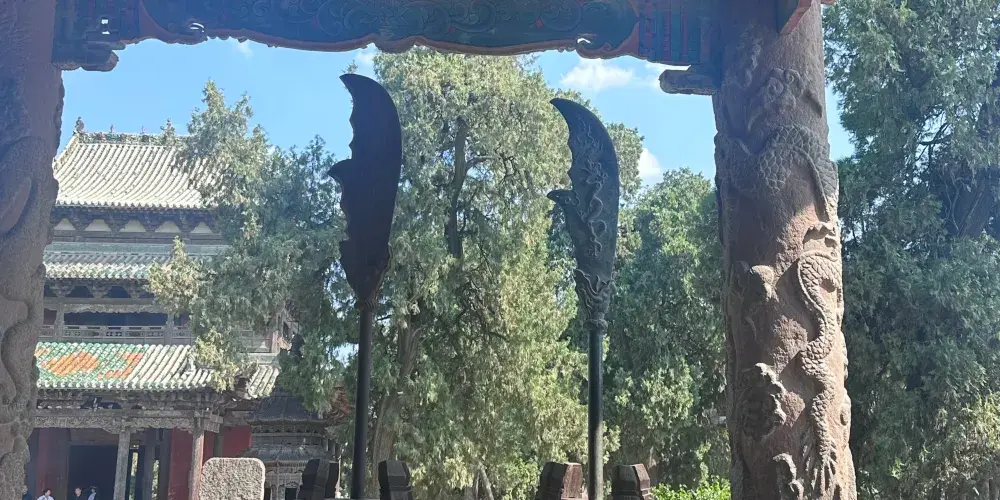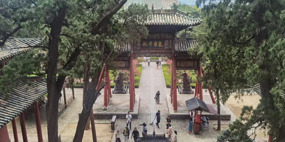 寺頭關帝廟位於山西省運城市平陸縣曹川鎮寺頭村北高嶺,佔地面積2800平方米,廟宇坐北朝南,為三進院落布局,中軸線現存山門、獻殿、正殿及春秋樓。正殿為元代遺構,採用單檐懸山頂及五架椽屋梁架結構,獻殿屬明代建築,其餘多為清代遺存。春秋樓為二層十字歇山頂,一層面闊三間帶圍廊,灰陶筒瓦屋面。保護範圍東、西、北各延伸5米,南至山門南10米,建設控制地帶外擴30米。