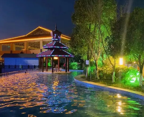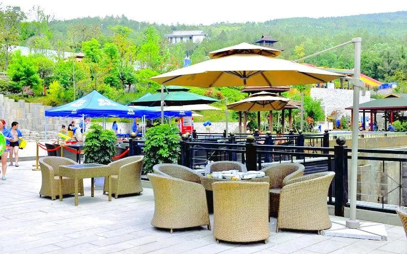 女皇温泉又叫汤山,坐落于半山之中,远离城市喧嚣,自然风景优美,空气清新,复古的建筑风格,所打造的主题为“梦廻唐朝”与千佛崖景区相呼应。女皇温泉融合了私家别墅汤苑及天然露天温泉的综合优势,适合不同年龄、层次的客人。