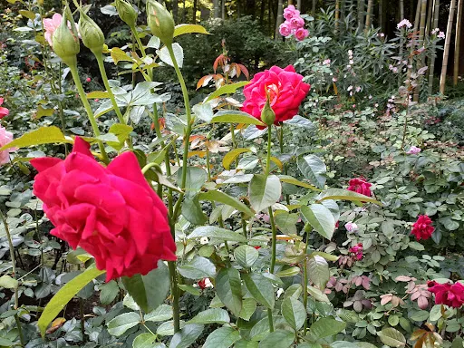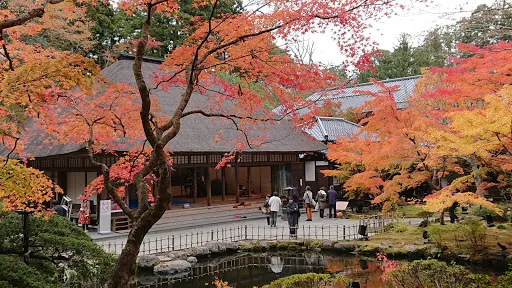 三惠殿是國家指定的重要文化遺產,使用400年前伊達正宗的遣歐使從歐洲帶回來的設計與標誌,臨摹日本最古的西洋玫瑰表徵圖,此外,庭園裡還種植著佛教寺院罕見的西洋玫瑰。