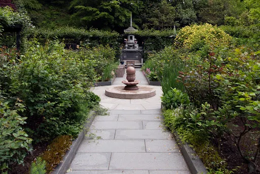 庭園布滿苔蘚和岩石,獨具特色。