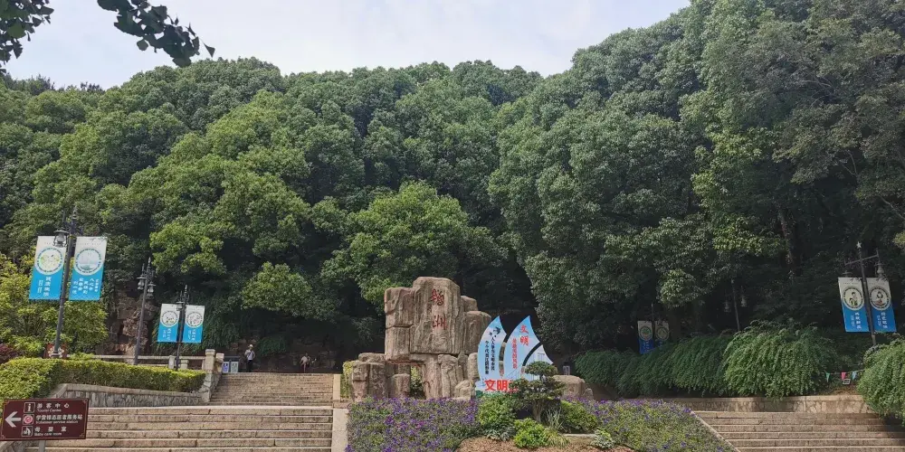 則評價黃山西銜鵝鼻山、君山。東接蕭山、長山、巫山,循江逶迤10公里,屏蔽着錦綉江南的樓宇沃野,自然形成“枕山負水”、“水環巒拱”的天塹之勢。清同治、光緒年間,為防外艦入侵,特在此增築炮台,使之成為中外聞名的江陰要塞。而今,廢壘猶存,12座分佈在各個山灣、山頭的混凝土炮台,7座清理出土的清同治十三年(1874年)的古炮和2尊“耀武大將軍”萬斤鐵炮及彈丸,構築了古今戰場勝蹟。
