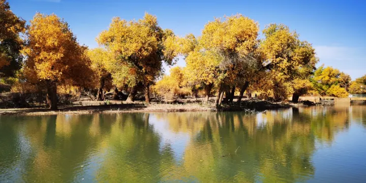 二道橋充滿了原始風貌,水道寬闊,間有蒙古包和綿延的沙丘作陪襯,是個拍照的好地方。尤其不容錯過的是居延綠洲,那裡有我國境內特大、特粗、特老的胡楊樹,相傳是三百多年前土爾扈特人放火焚林後,留下來僅有的一株。
