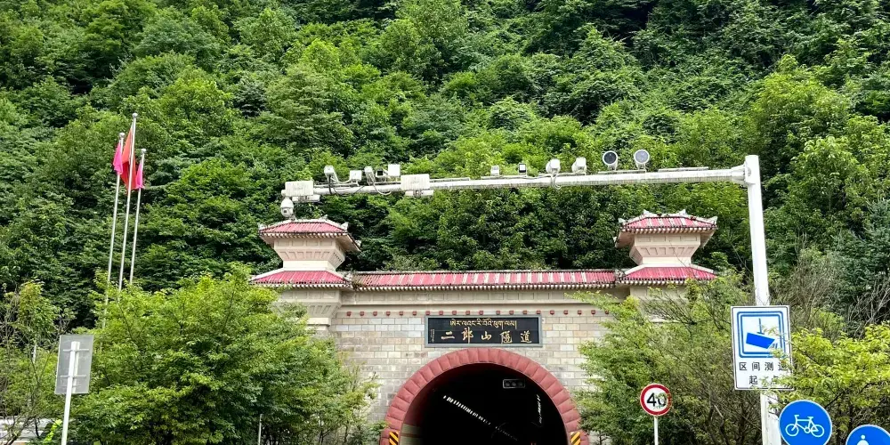 川藏公路二郎山隧道位於四川省雅安市和甘孜州交界的二郎山,它起於天全縣龍膽溪川藏線,止於瀘定縣別託山川藏公路,全長約8600米。