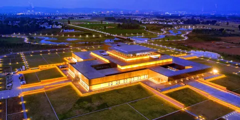 偃師商城遺址是中國商代早期都城遺址,北靠邙山,南臨洛水,是洛陽聞名的“五大都城遺址”之一。城池平面略呈長方形,南北長1700餘米,北部寬1215米,中部寬約1120米,南部寬740米。城牆夯築,南城牆已被洛河沖毀,現存西、北、東城牆,已發現城門7座,其中北面1座,東西面各3座。城內包括大城、小城、宮城三重城垣。城址內發現有城門、道路、宮殿、居址等遺跡,並出土大量石器、陶器、銅器、玉器等遺物。大城四周城牆均已發現,皆埋在今地表之下,殘高一般在1.5至3米左右。已發現城門多座,城外有護城河。小城位於大城內西南部,其西城牆、南城牆與大城西城牆、南城牆重合。宮城位於小城中央偏南。有學者認為這是湯都西亳,也有專家認為這裡是太甲所放處的桐宮。