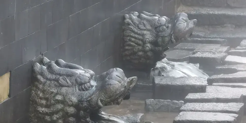 藥泉景區-二龍眼泉位於中國黑龍江省五大連池,是個以天然礦泉水聞名的旅遊勝地。二龍眼泉的水質清澈,常年保持恆定的溫度,使其成為全年皆宜的旅遊目的地。泉水是從石橋上的一個石雕大龍頭的嘴中流出,在大龍頭的兩側還有兩個小龍頭,從三個龍頭中淌的泉水構成了一個微型瀑布。