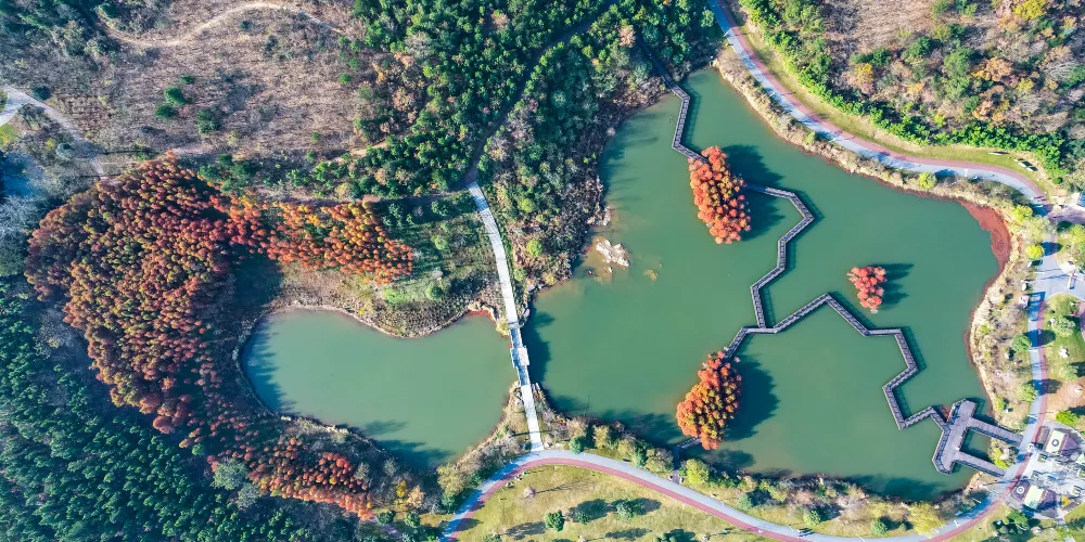二龍崗生態公園位於安徽省金寨縣新城區,總佔地面積約51.8萬平方米,其中水域面積約5.39萬平方米,地勢中間高四周低,自然資源豐富,是一個以生態修復為主,集休閑、健身、觀光、娛樂為一身的城市生態中央公園。