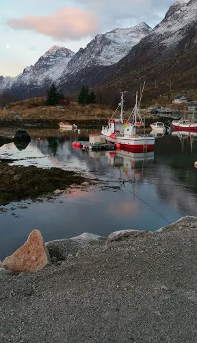 除極光外,小鎮夏季可進行獨木舟、峽灣健行等戶外活動,冬季則適合雪鞋穿越與冰釣。村莊東側山脊開闢了多條健行路徑,登頂後可俯瞰峽灣全貌及遠處林根雪山群峰。這裡既承載著挪威北部漁業歷史,也以原始自然風貌成為現代極地探索的經典目的地。