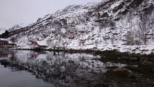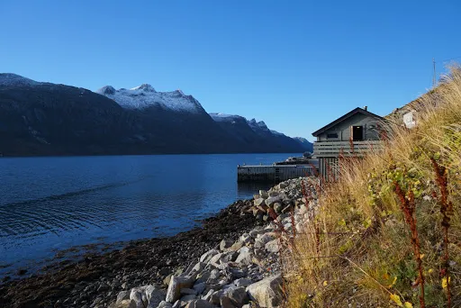 峽灣小鎮位於挪威特羅姆斯郡西海岸,是北極圈內備受推崇的自然景觀與極光觀測地。這個峽灣村被群山環抱,U型峽灣由冰川侵蝕形成,冬季積雪覆蓋的峰巒與深藍海水構成明信片般的畫面,夏季則因極晝現象呈現苔原植被與白樺林的生機。