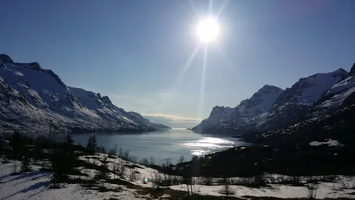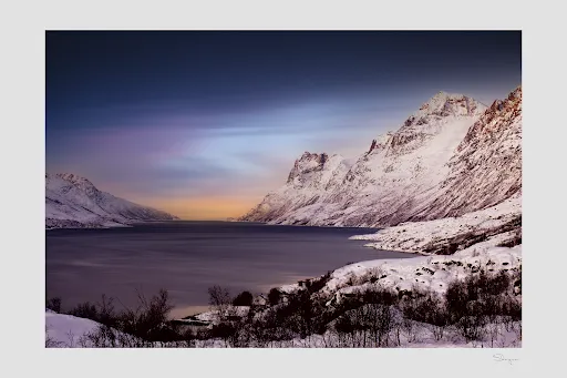 峽灣小鎮位於挪威特羅姆斯郡西海岸,是北極圈內備受推崇的自然景觀與極光觀測地。這個峽灣村被群山環抱,U型峽灣由冰川侵蝕形成,冬季積雪覆蓋的峰巒與深藍海水構成明信片般的畫面,夏季則因極晝現象呈現苔原植被與白樺林的生機。