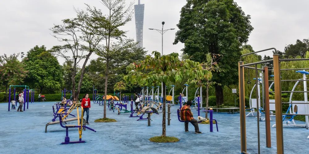 二沙島體育公園的總面積超過1萬平方米,是無圍欄、全開放式公益性群眾健身公園,每天開放18小時(清晨6時至深夜24時)。園中設置了12類群眾健身項目,其中10類對市民免費,僅五人制足球場和籃球場兩個項目收費。