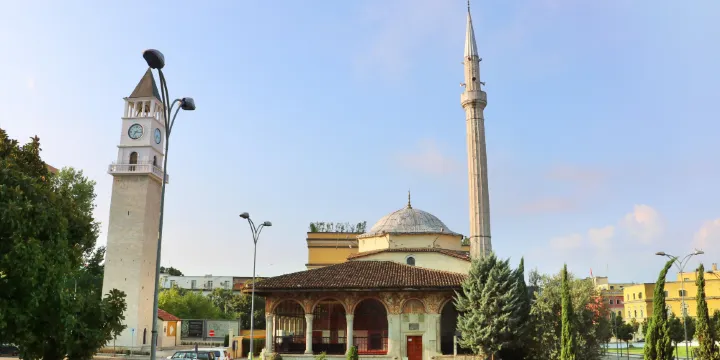 Et'hem Bey 清真寺位於阿爾巴尼亞首都地拉那市中心的斯坎德培廣場,是該市代表性的歷史與宗教建築之一。清真寺的建築風格融合了奧斯曼帝國時期的特色,主體為方形祈禱大廳,頂部覆蓋著半球形穹頂,北側設有帶有拱廊的門廊和一座細高的宣禮塔。
