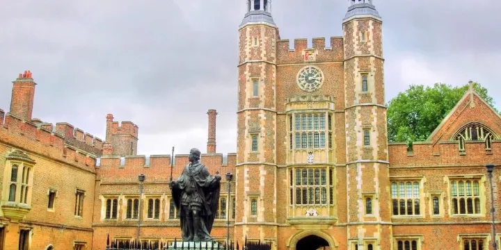 伊頓公學坐落在倫敦20英裡的溫莎鎮一橋之隔的伊頓鎮內,是英國最著名的貴族中學。地處白金漢郡的泰晤士河河畔,與女王鐘愛的溫莎宮隔岸相望,伊頓公學是一座古老的學府,由亨利六世於1440年創辦。伊頓以“精英搖籃”、“紳士文化”聞名世界,也素以軍事化的嚴格管理著稱,學生成績大都十分優異,被公認是英國最好的中學,是英國王室、政界經濟界精英的培訓之地。