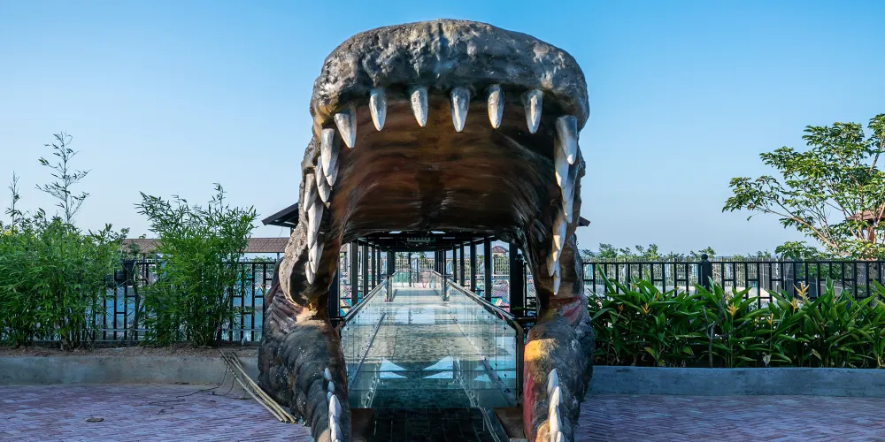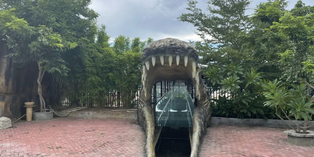 踏上懸空玻璃棧道,腳下便是鱷魚池,幾百斤重的大鱷魚清晰可見。在工作人員協助下掛好誘餌,體驗「逗鱷互動」的刺激——當鱷魚躍起搶食時,安全網讓你無需畏懼,定格震撼瞬間。