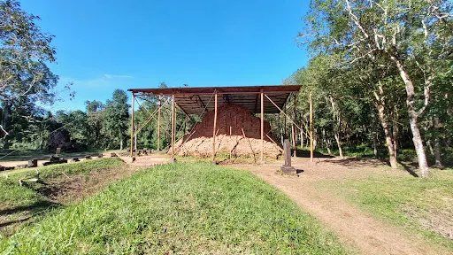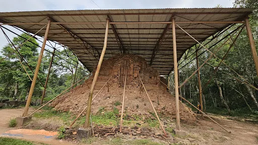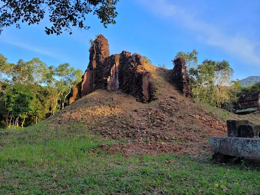 美山遺址位於會安西邊四十多公里處,是全越南規模較大的古佔婆國宗教遺址。遺址建立在群山環繞的山谷中,整個谷地建起了多座印度教寺廟。佔婆的塔是用紅磚建成,式樣複雜,體現了印度教風格。現在,遺址內有些雕刻保存得比較好。