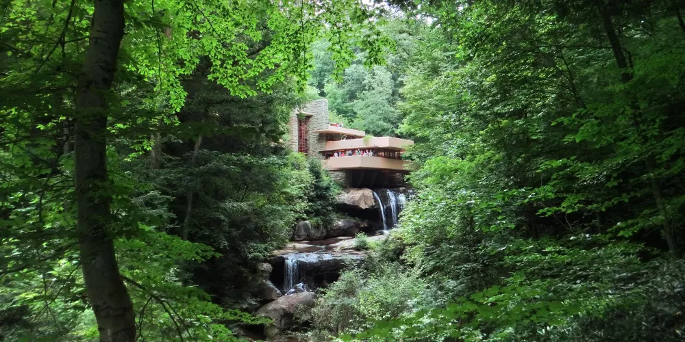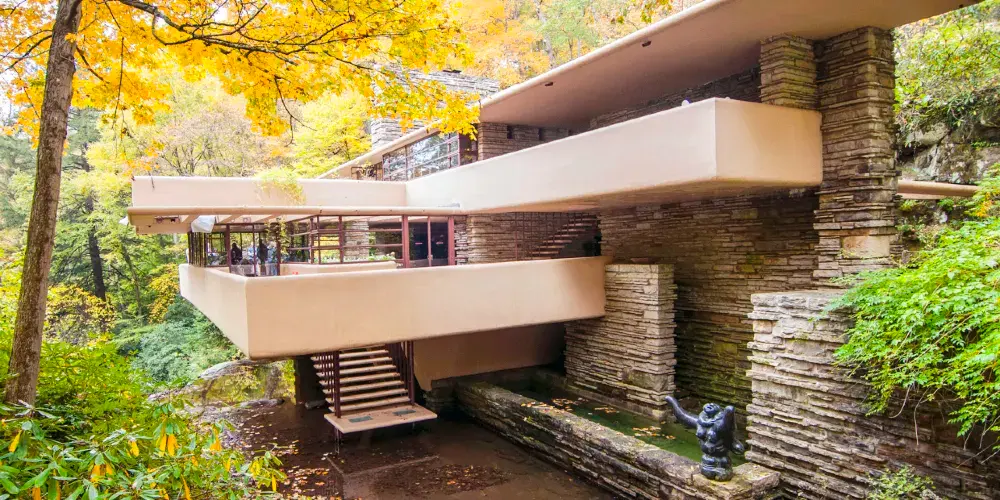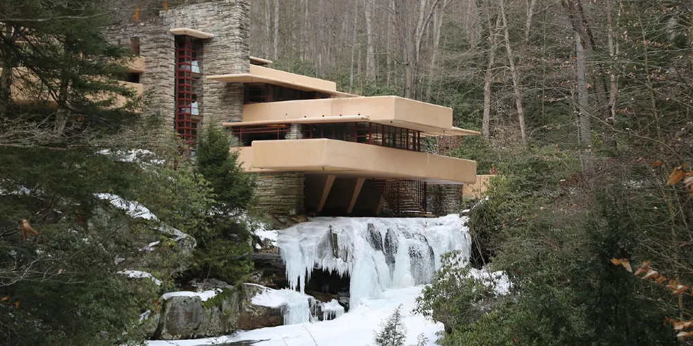 流水別墅坐落在賓夕法尼亞州西南部城市匹茲堡,是一座私人住宅。1934年,建築由著名的美國建築師弗蘭克•勞埃德•賴特所設計,建於阿勒格尼高原的月桂高地,橫跨在熊奔溪的瀑布之上,因而又被稱為落水山莊。1964年,它被作為博物館向公眾開放,這裡的景色被《史密森尼》雜誌評為28個一生中一定得造訪一次的地點。美國建築師學會將它稱為美國建築史上最偉大之作。