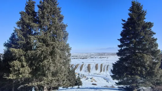 天山壩是照壁山水庫的大壩,為了紀念建設者頂風冒雪的三年建設,故取名天山壩。照壁山水庫工程是烏魯木齊縣板房溝河流域的控制性骨幹水庫。水庫工程總庫容量為735.2萬立方米,工程由大壩、導流洞、溢洪道、庫區道路等組成。