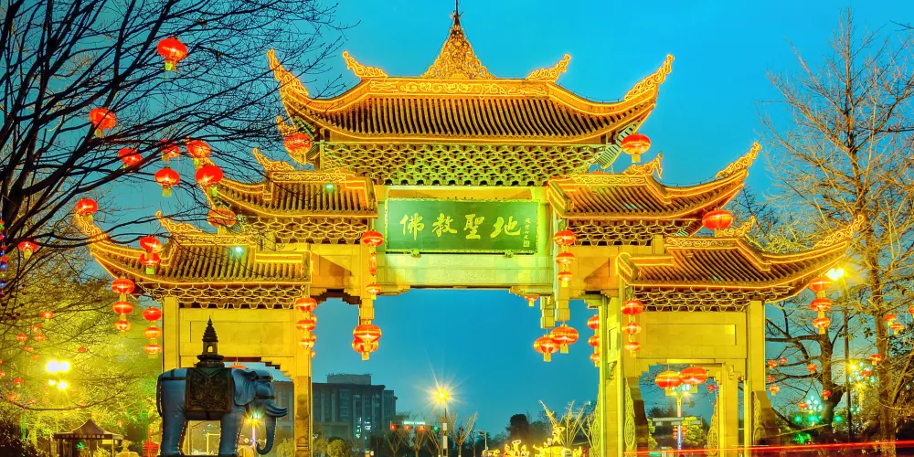 看到“天下名山”牌坊,就意味着你即將要進入峨眉山景區了,因為這座牌坊是峨眉山的山門。牌坊背面的“佛教聖地”出自中國佛教協會會長趙樸初手書。