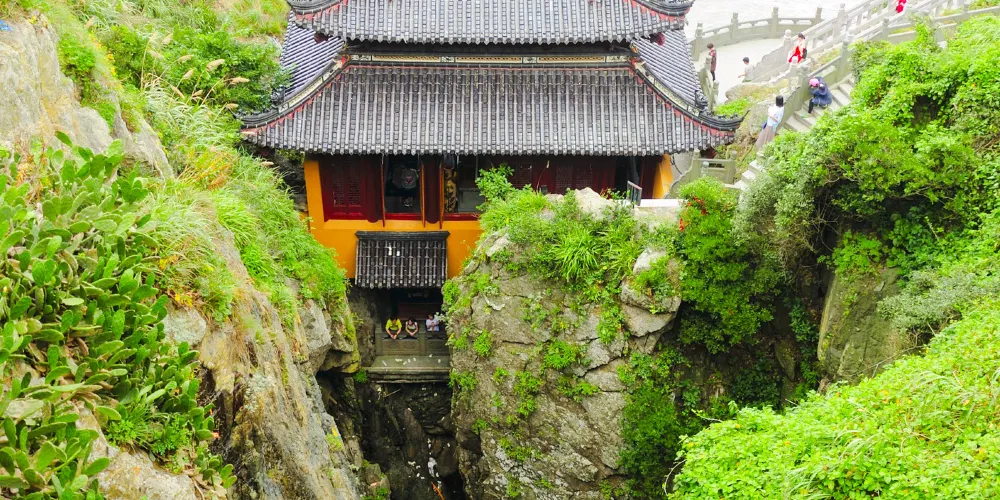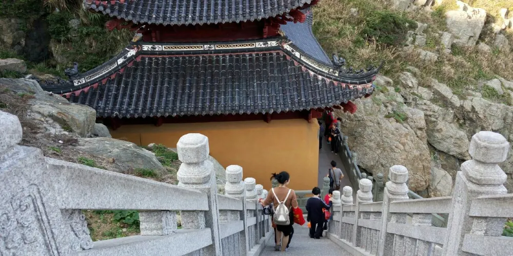 舟山市普陀山風景區-千步大沙是普陀山風景區上較大的沙灘,位於普陀山風景區東部海岸,北端離法雨寺不遠。從南面的幾寶嶺北綿延到東北的望海亭,總長近2公里。舟山市普陀山風景區-千步大沙要比它南邊的普陀山風景名勝區-百步沙更為開闊,而且沙質更為細膩,是踏浪觀海的好地方。